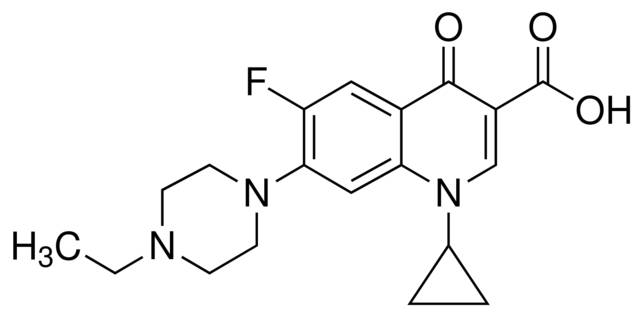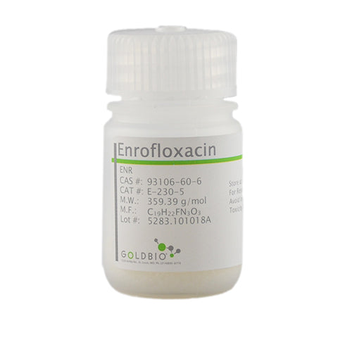 Enrofloxacin is a fluoroquinolone antibiotic targeting gram-positive and gram-negative bacteria as well as some Mycoplasma species. It has been useful in researching resistance to quinolones in Salmonella enterica, Mycoplasma gallisepticum, and E. coli.